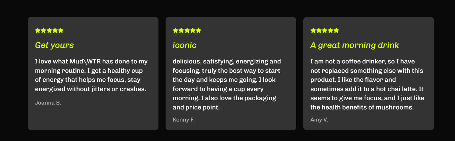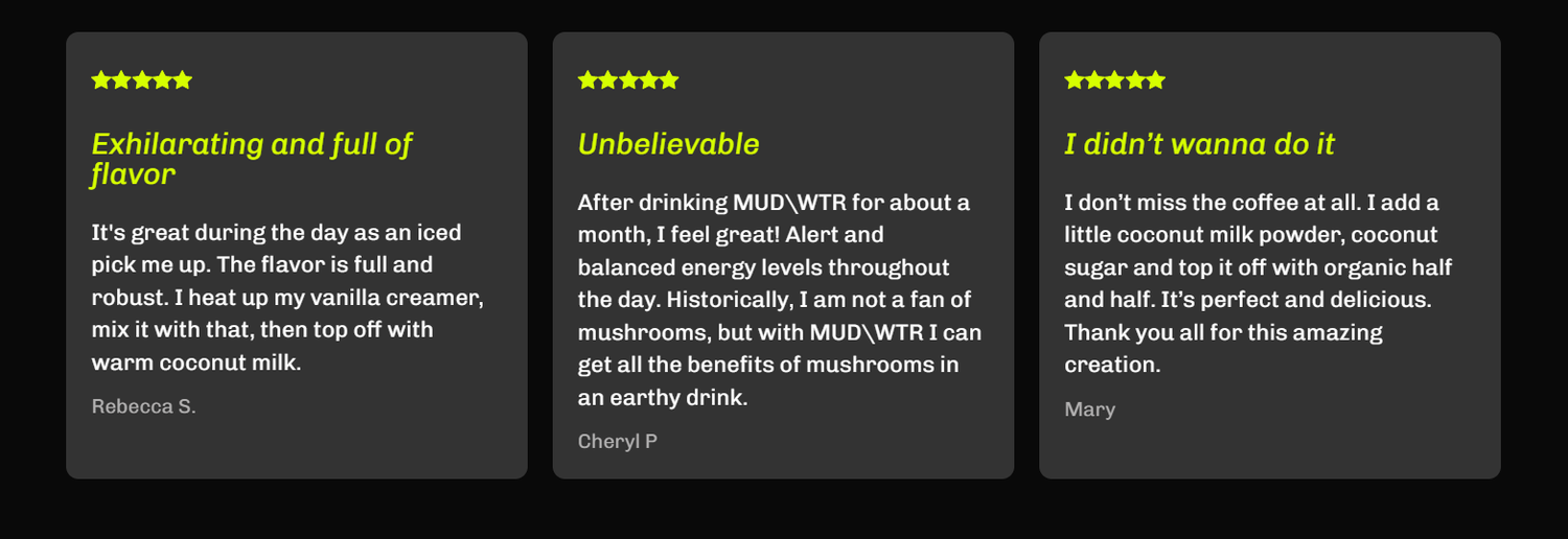 MUD\WTR is a coffee alternative consisting of organic ingredients lauded by cultures old and young for their health and performance benefits. With mild caffeine, nootropics and 100% organic ingredients it gives you natural energy, focus and more without the jitters and crash.